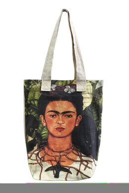 Frida Kahlo Self Portrait with Thorn Necklace Art Cotton Tote Bag