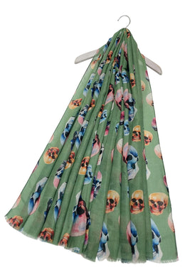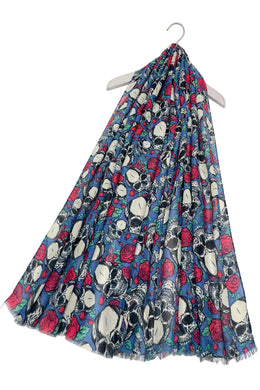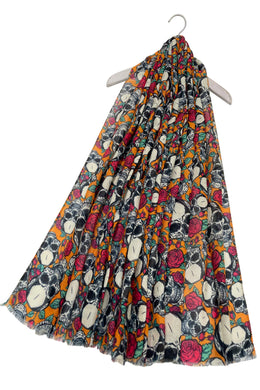 Bright Cute Flower & Skulls Print Frayed Scarf