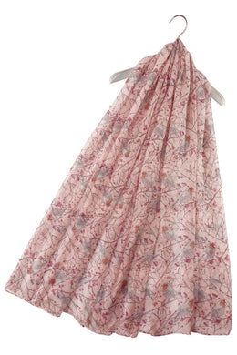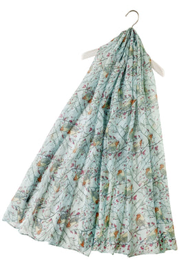 Robin Bird on Branch Print Scarf - BABY BLUE