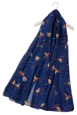 Robin Bird & Berry Branch Print Scarf – NAVY BLUE
