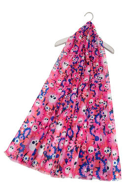 Bright Cute Flower & Skulls Print Frayed Scarf