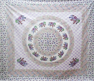 Cream Base Elephant Mandala(Purple) Throw/Bedspread