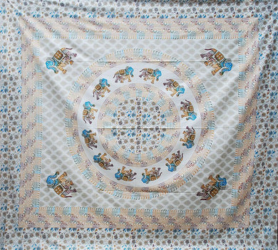 Cream Base Elephant Mandala(Green) Throw/Bedspread