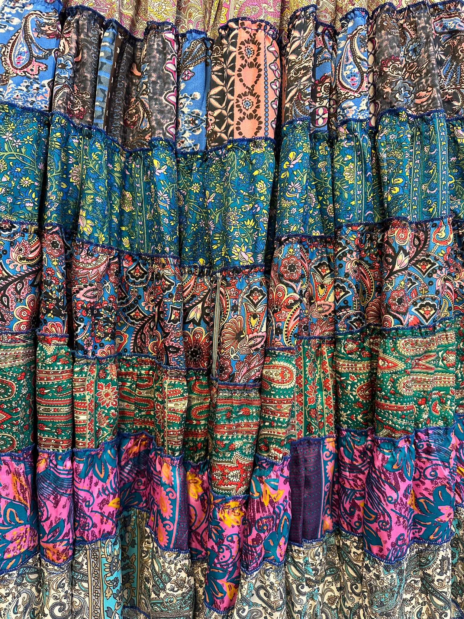 Featuring a layered patchwork paisley print deign with an elasticated waistband.